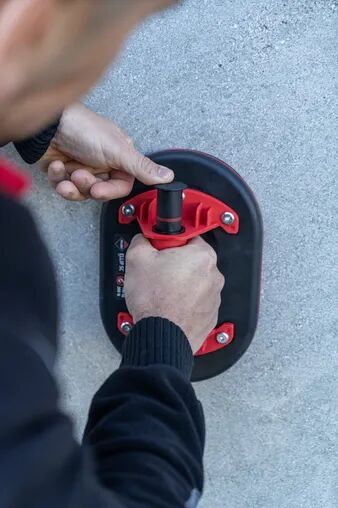 With the evolution and increasing presence of large-format ceramic tiles, the use of suction cups such as the ELLIP SC VACUUM SUCTION CUP is becoming increasingly necessary. Ceramic tile formats are becoming increasingly larger, making the use of suction cups as an auxiliary tool increasingly important. The increased presence of rough finishes, and especially structured or textured finishes, on the market requires professionals to use more specific tools and implements. Thanks to their oval design and the concentric lip incorporated into the rubber base, RUBI's ELLIP SC VACUUM SUCTION CUP are perfect for handling ceramic tiles with rough or slightly structured (bas-relief) surfaces, especially those that mimic wood. The handle design reduces the risk of accidentally disabling the suction cup and ensures quick and safe activation. Also, ensure the best position during use to reduce strain and fatigue. Maximum load capacity: 140 kg. The ELLIP SC VACUUM SUCTION CUP comes in a practical carrying case for maximum protection and transport. A suction cup in poor condition is neither safe nor reliable. All RUBI suction cups have undergone constant quality testing to ensure and guarantee their proper durability during use. At RUBI, we have always been concerned about the health of our professionals.